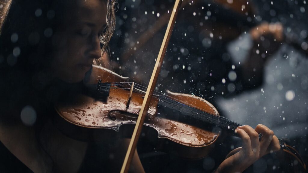 Dies ist ein Imagespot zur Einführung der neuen hansgrohe Dusche ‚Raindance Alive‘. Dunkelheit und Stille, klassische Musik setzt ein, das Dunkel lichtet sich: Instrumente werden sichtbar, Musiker… ein klassisches Orchester....